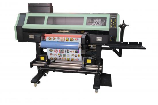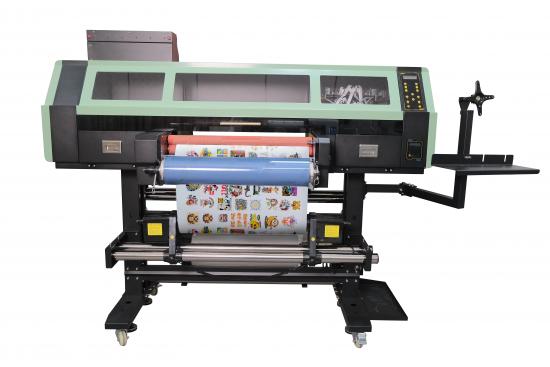 Zhou Nom de famille 60 cm UV rouleau à rouleau imprimante UV dtf , impression et plastification tout en une seule machine. Avec trois têtes d'impression U3200, vitesse d'impression 6 passes 6 mètres carrés.
